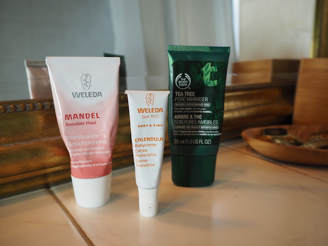 The Body Shop Aloe Protective Serum // Weleda Coldcream // The Body Shop Aloe Calming Facial Cleanser